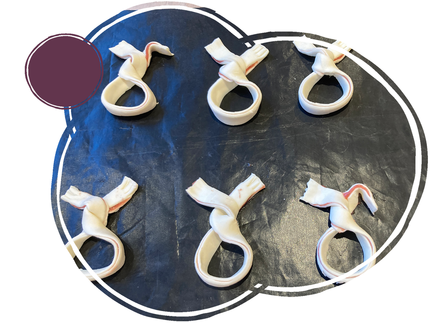 Aus den einzelnen Streifen formt ihr nun die Blätterteighäschen und backt sie nach Packungsanleitung im Backofen.